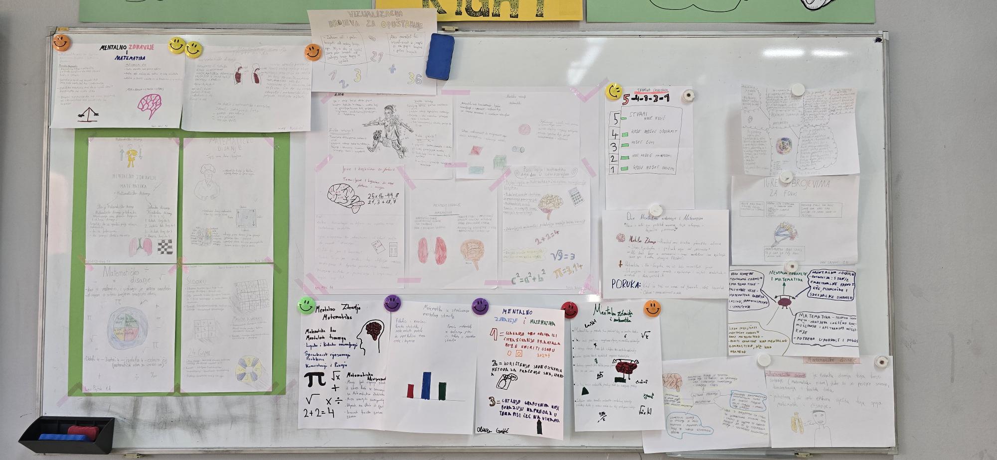 Posebno zanimljiv doprinos dala je nastavnica matematike, koja je spojila elemente matematike i psihologije – učenici 1. H i 1. J razreda izrađivali su plakate sa savjetima za očuvanje mentalnog zdravlja koristeći matematičke motive poput odbrojavanja i geometrijskih oblika.