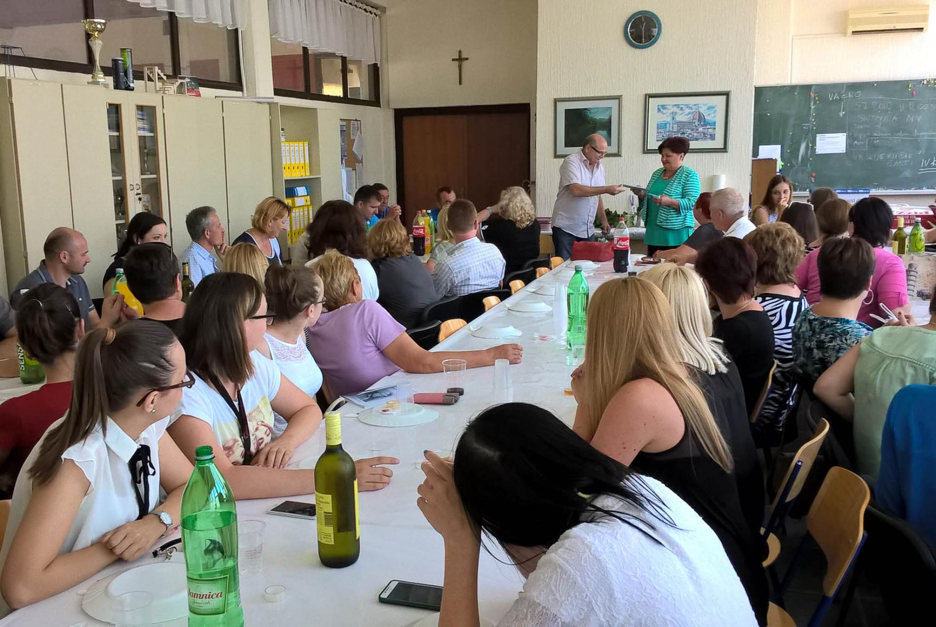 Zadnji skup djelatnika škole prije odlaska na godišnje odmore... Povodom odlaska u mirovinu profesorica Ivka Šulentić je priredila domjenak na kojem smo kolegici imali priliku izraziti zahvalu za dugogodišnji rad...